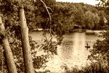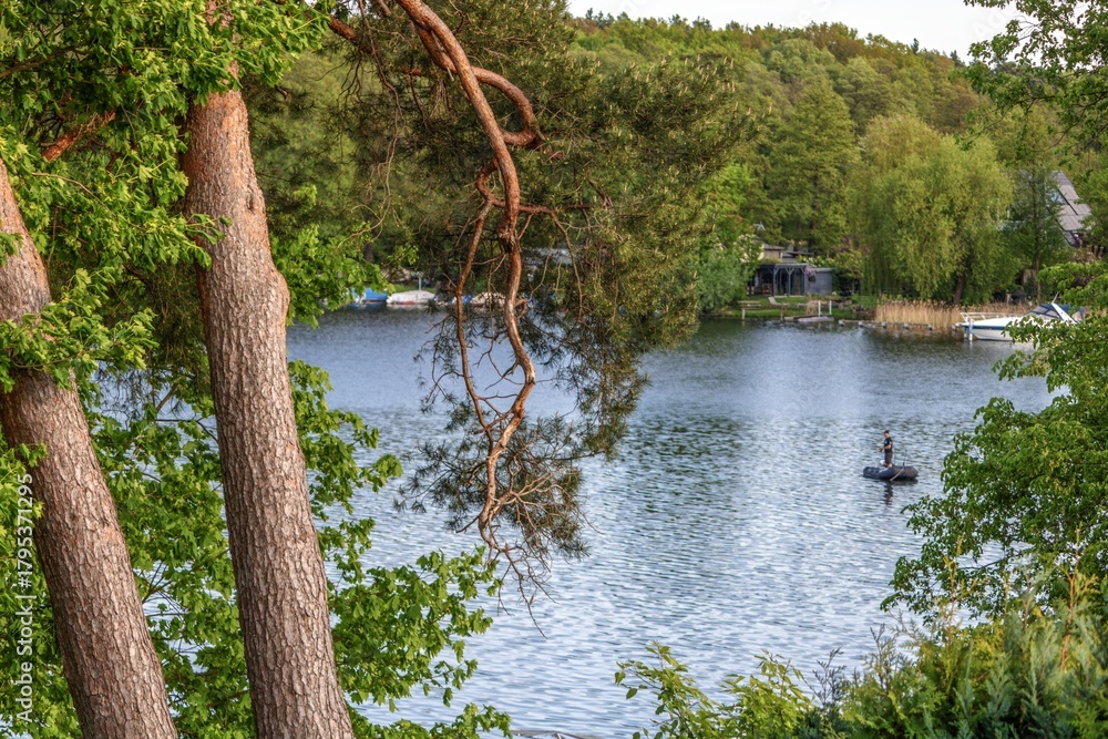 erkner, deutschland - idylle mit angler auf dem flakensee