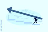 Image pop 3d zine full collage of happy businessman businesswoman stand arrow development career chance promotion employee