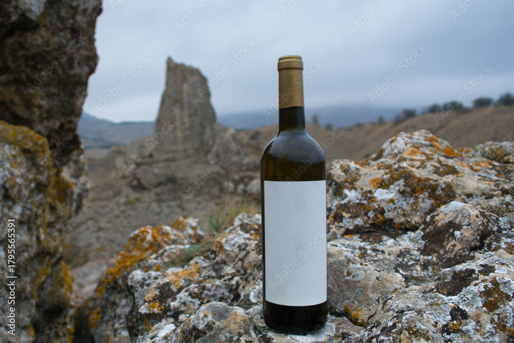 A bottle of wine in the mountains