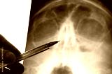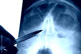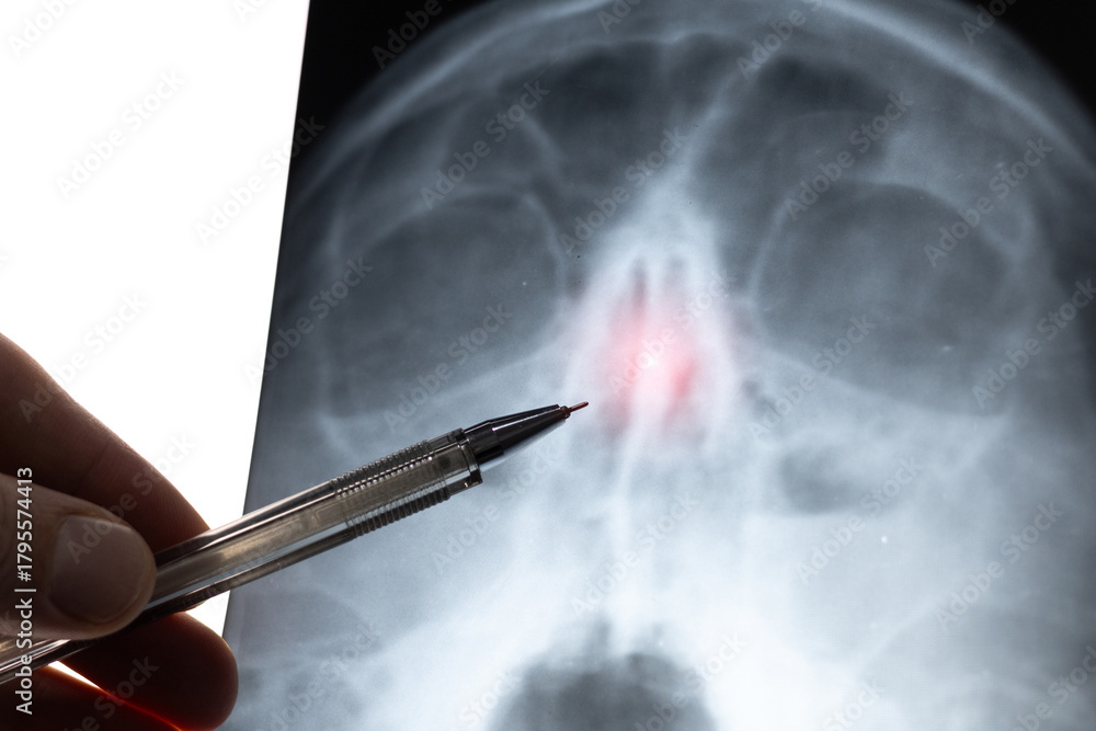 Doctor learning medical X-ray of head Injury. Deviated Nasal Septum. Nose trauma.