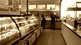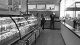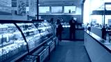 Blurred grocery aisle with defocused refrigerated display and shelving in shallow bokeh shop; background backplate copyspace calm.