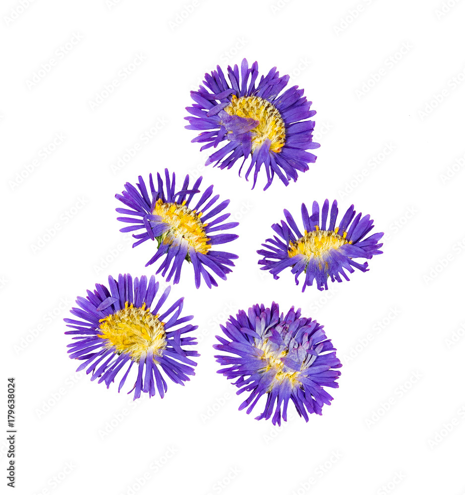 Pressed and dried flower symphyotrichum novi-belgii (New York aster), isolated