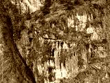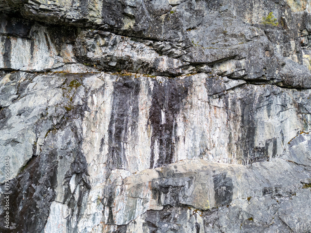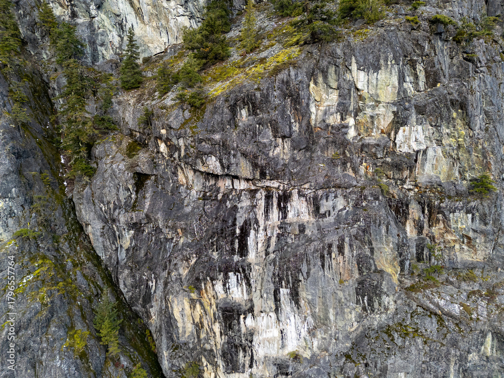 Steep Rocky Cliff Face With Moss and Sparse Trees Towering Over a Canyon