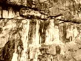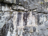 Rugged Gray Rock Face With Vertical Cracks and Moss in a Mountain Cliff, Canada