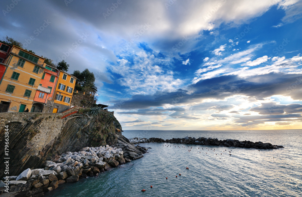 Italy, Liguria, Five Lands - scenic view of the coast, sea, sky and clouds