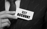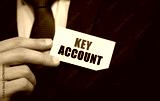 Businessman putting a card with text KEY ACCOUNT in the pocket