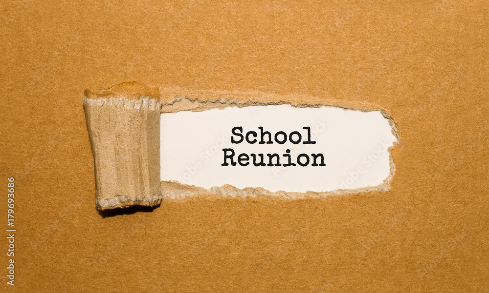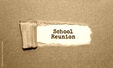 The text School Reunion appearing behind torn brown paper