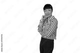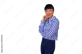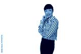 Woman with curly hair working on laptop, typing and smiling, conducting online business or remote work