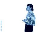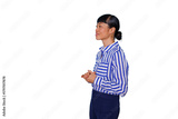 Businesswoman standing and working remotely with a laptop, focusing on important digital tasks and professional communication