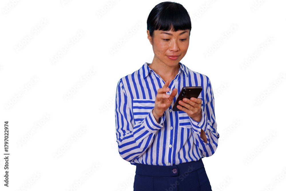 Woman holding shopping bags after retail therapy, enjoying seasonal sales and consumer shopping with a transparent background