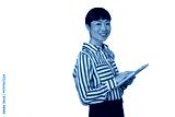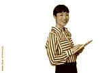 Female doctor smiling while pointing, healthcare professional indicating medical information or advice, transparent background