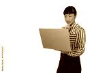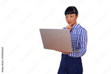 Female doctor smiling, holding a digital tablet, offering medical care, advice, and professional consultation with a stethoscope