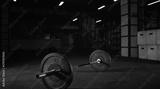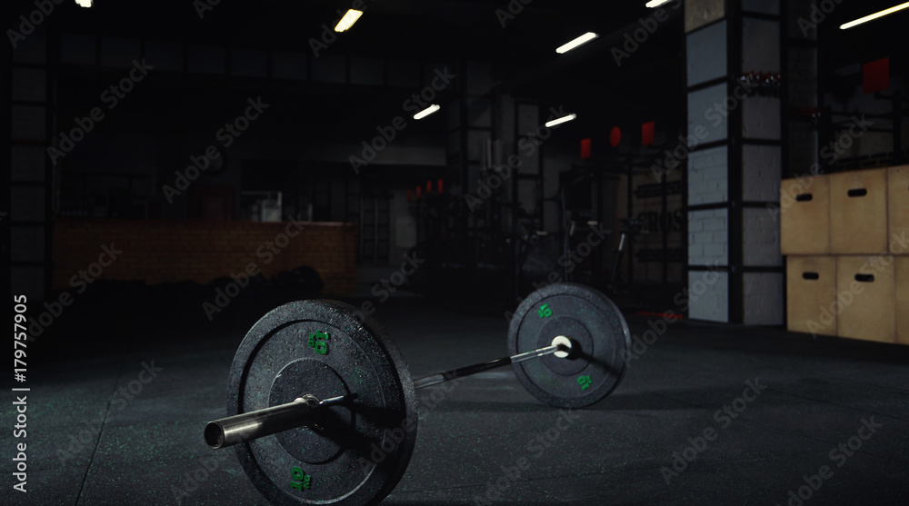 Heavy barbell on the floor of a gym studio