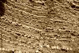 Exposed layers of sedimentary rock. Sandstone rocks.