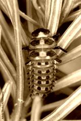 Larva of Anatis ocellata, commonly known as the eyed ladybug, is a species of ladybug in the family Coccinellidae.