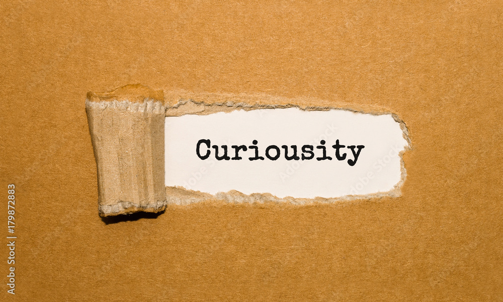 The text Curiousity appearing behind torn brown paper