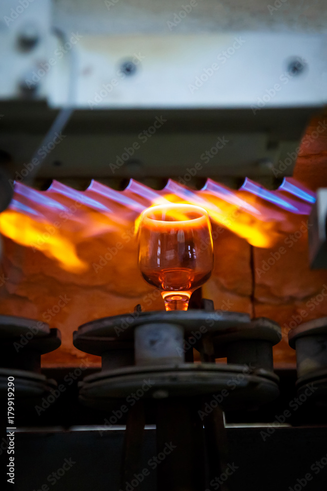 Glass blowing process, Manufacture of glassware, Someone is manufacturing glass products.