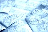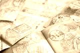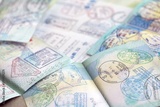 Many open passport pages with lots of visas and entrance stamps from various countries passport control. Concept of travel and tourism worldwide
