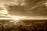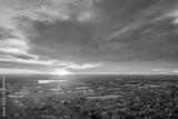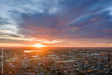sunrise over midtown of Fort Collins and plains in northern Colorado, November aerial view