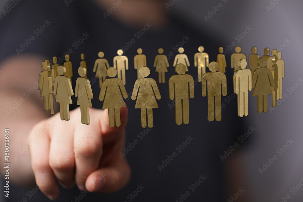 Visual of interconnected people. Business teamwork, partnership, and social unity concept with golden figures of people in circle.