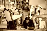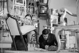 Professional craftswoman restorer in uniform renewing old-fashioned chair while working in repair shop