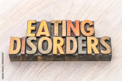 eating disorders word abstract in wood type