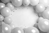 Pastel colors balloons on Beige color background, space for text.