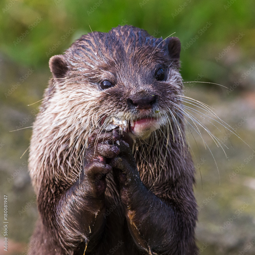 Asian small-clawed otter feeding itself