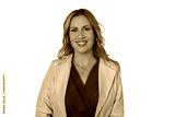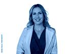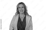 Professional woman smiling, posing confident and happy for portrait. Blonde businesswoman presenting an idea or product