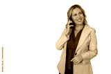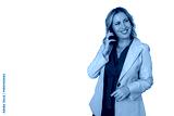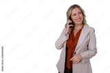 Businesswoman talking on cell phone, smiling, communicating, making a call, global connection on transparent background
