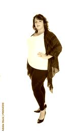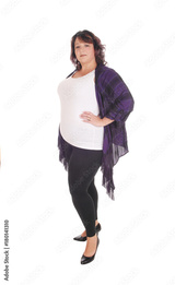 Full figured woman standing in tights