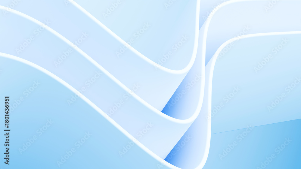 Abstract wavy curved 3d render. Blue soft layers of plastic with lines, folds, ruffles. Modern wallpaper, texture pattern.