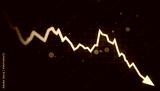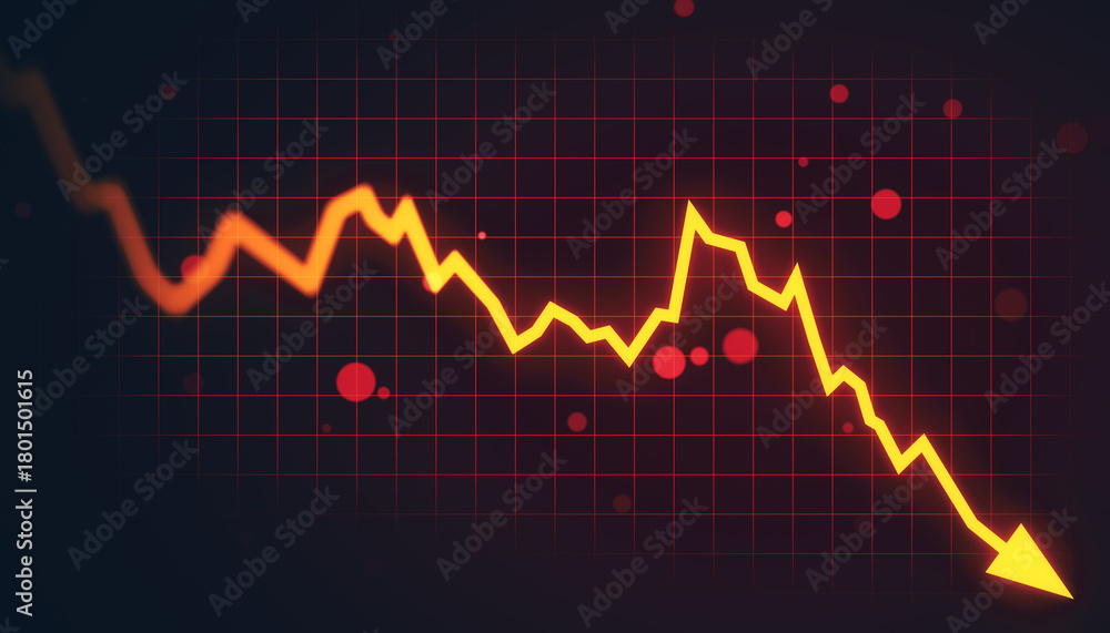 Global financial market crash with downward arrow and graph on digital red grid background showing crisis and economic collapse impact concept. 3D Rendering