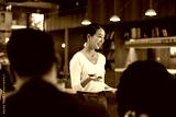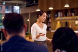 Asian Businesswoman Presenting In Modern Office Meeting With Colleagues And Bookcase Background
