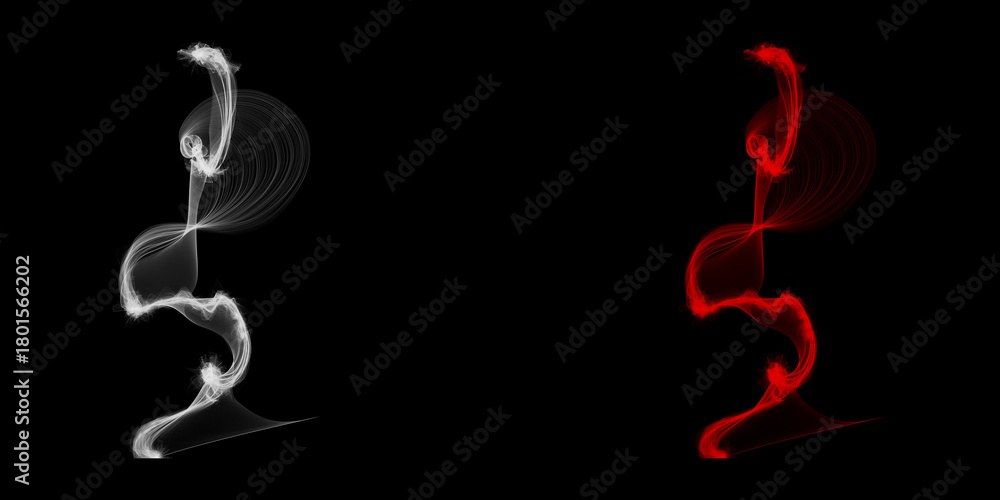 Ethereal dance of light A graceful expression of duality in white and red floating in the infinite dark with smooth