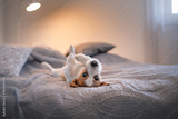 Dog Jack Russell Terrier lying on the bed