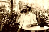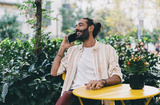 Man laughs while holding tablet, absorbed in screen interaction, showing how digital tools fuel joy, connection, and expression in an independent lifestyle.