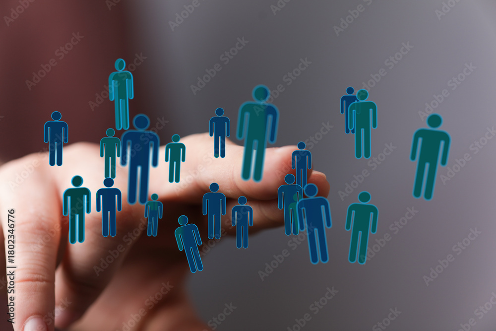 Abstract network of people icons interacting, illustrating communication, community, and collaboration, busines