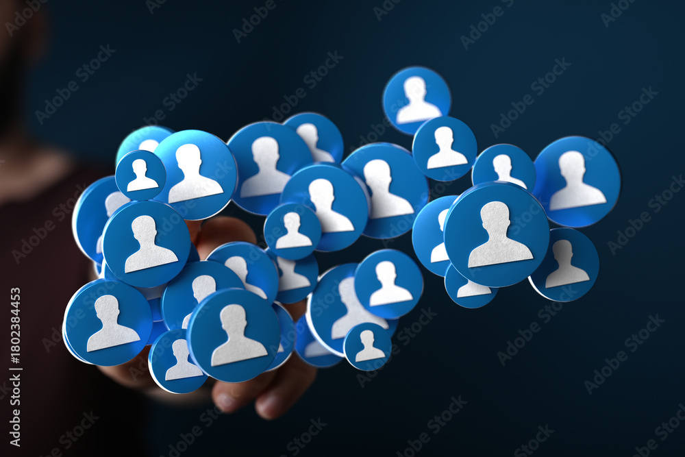 Close up of a hand holding a digital network of people icons. The perfect visual for networking, social media, and communication themes.