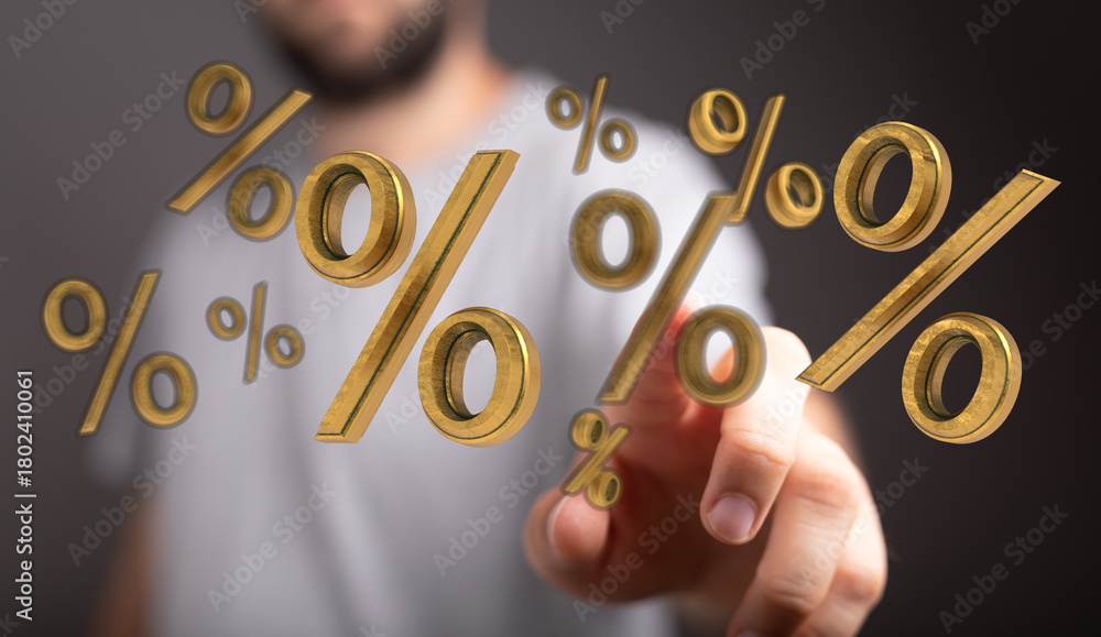 Abstract image featuring percentage signs with hand, representing finance, business, sales, interest, and investment concepts. Ideal for illustr