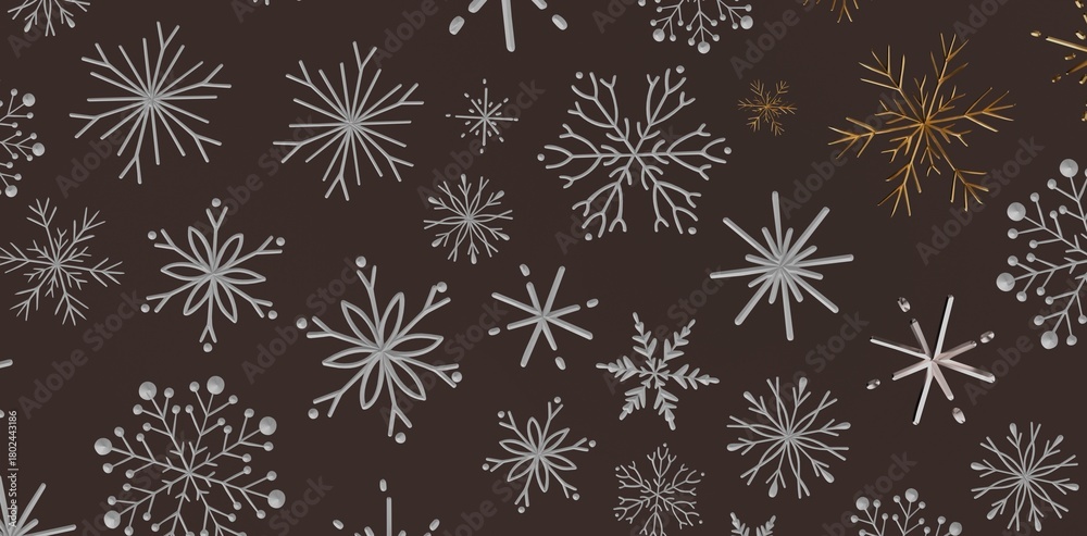 Sophisticated snowflake design in silver and gold, ideal for winter holiday projects. Features a seamless background for various desi