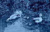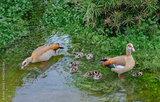 Egypt Nile goose couple with goslings at pond in Petah Tikva, Israel
