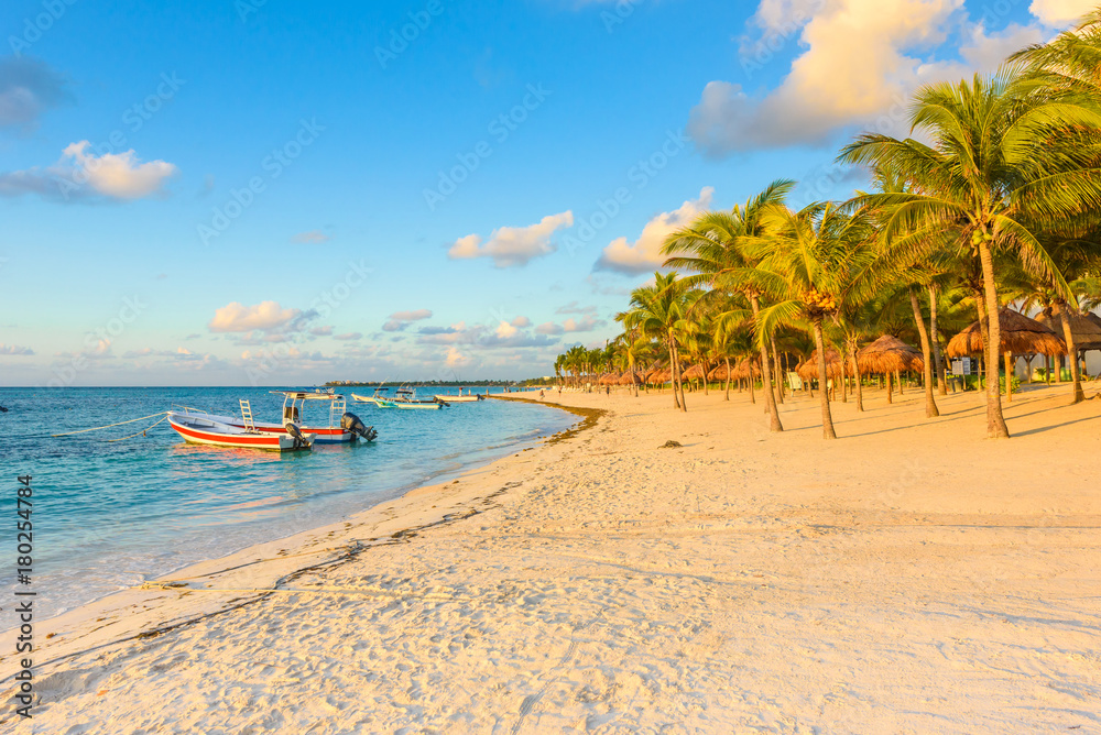 Sunrise at Akumal beach, paradise bay at Riviera Maya, caribbean coast of Mexico
