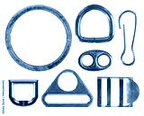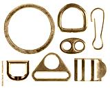 Isolated photo of rusty and worn, vintage and rusty metal cloth buckles and decorative elements on white background.