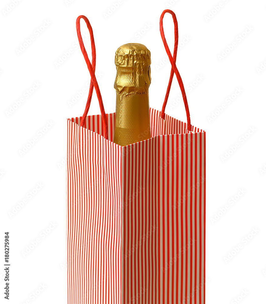 Champagne in shopping bag for celebrate isolated on white