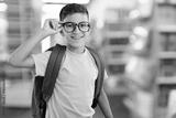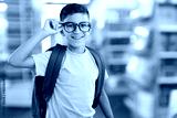 Portrait of smiling schoolboy wearing eyeglasses at primary school.