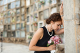 Woman brought flowers to the cemetery and cries over the death of a beloved relative