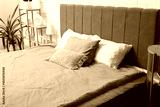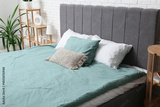 Comfortable bed with pillows in stylish bedroom