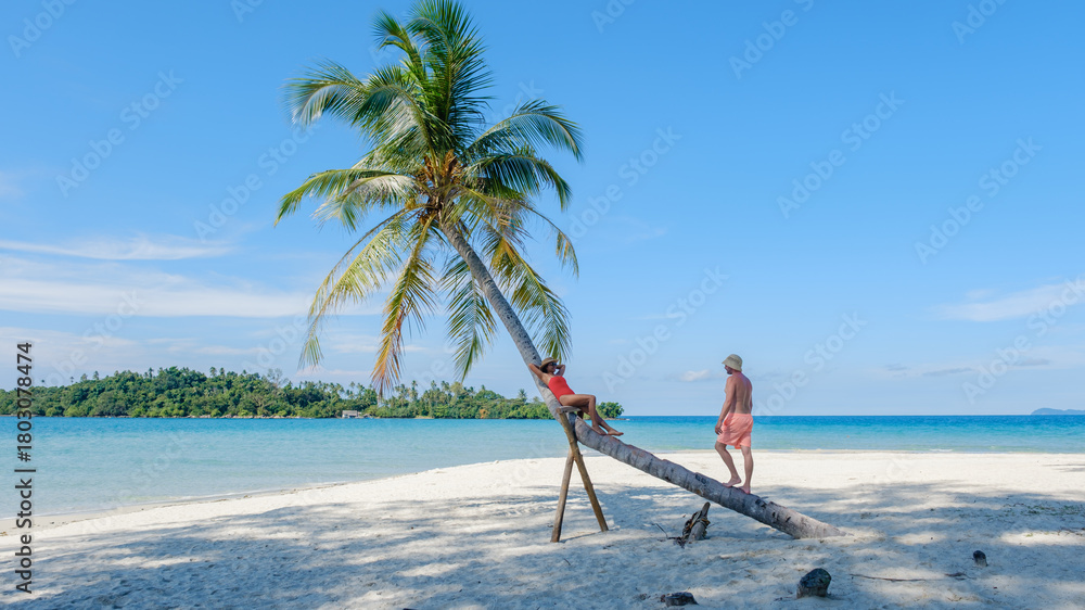 Relaxing at koh kood islands tranquil beach with vibrant palm trees and crystal clear waters