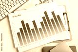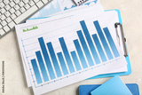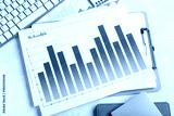 Notebooks with keyboard, many business graphics and diagrams on white background